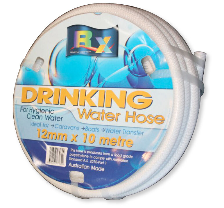 This is a high quality drinking water hose comes complete with fittings. Made from polyolefin resin it won't impart a taint or smell into your dirnking water. Essential for all caravanners! Key features: -Ideal for Caravans Boats Water Transfer -Provides hygienic clean water -High pressure hose Specifications: -Hose Length: 10 metres -Hose Thickness: 12mm (1/2') -Non Toxic food grade hose