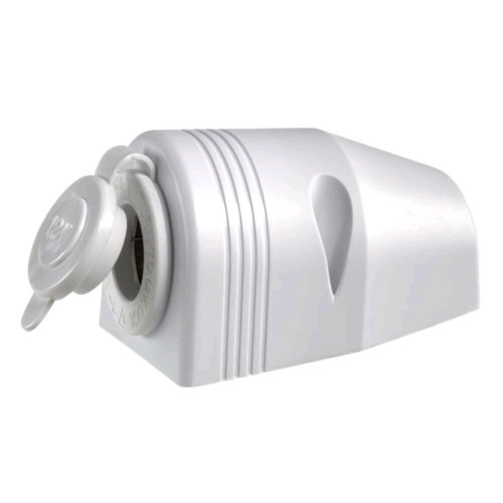 This surface mount accessory socket features a dustproof cover and stylish surface mount plastic housing. The moulded housing allows fitment to interior or exterior panels for easy installation. Specifications: Amperage rating 20A at 12V or 10A at 24V Colour: White