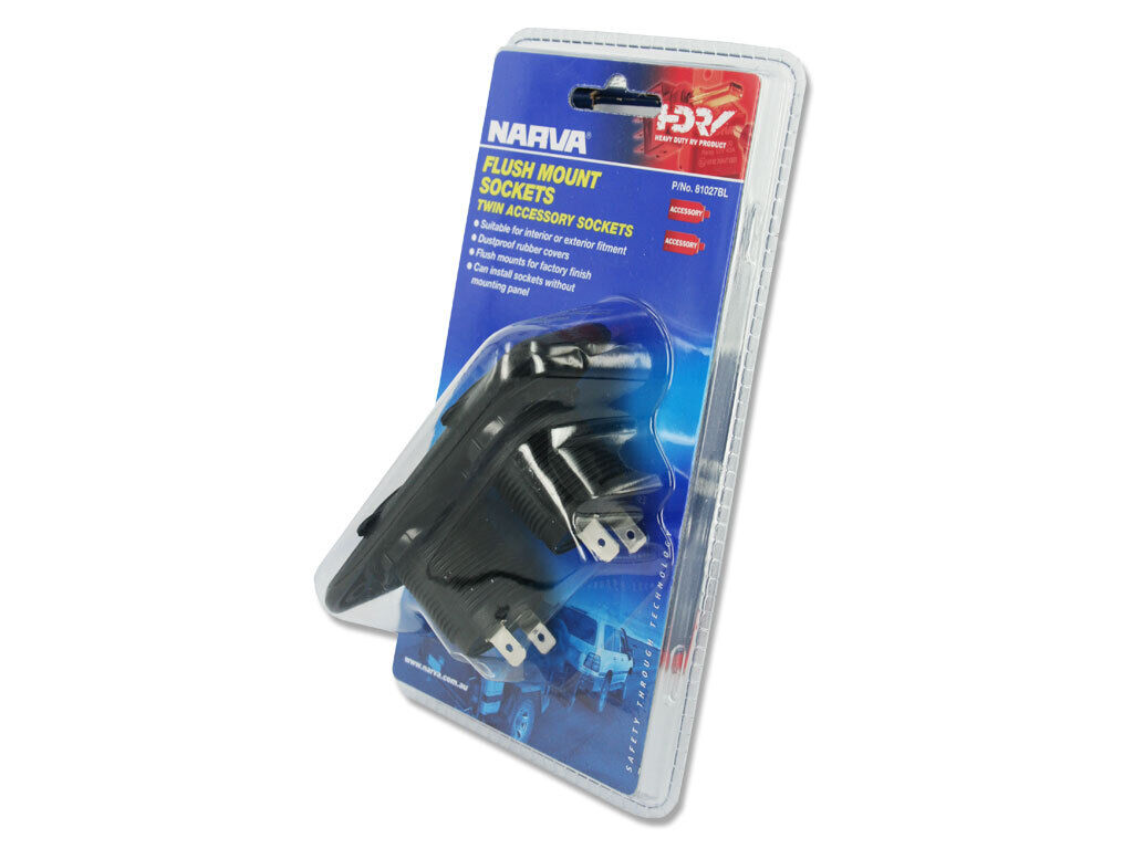 This twin accessory flush mount socket is suitable for interior or exterior fitment. Flush mounts to any flat surface for a factory finish. Key features: - Dustproof rubber covers - Sockets can be installed without mounting panel - Amperage rating 20A at 12V 10A at 24V per socket