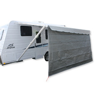 Coast Awning Sunscreens are a quick and easy addition to your roll out awning. With a 95% shade rating this awning will block out the sun as well as excess heat keeping you cool and protected. They are still quick and easy to install taking just 15 minutes for the less experienced caravanner to achieve setup. Once you have taken it out of the packaging just shake it out (like you would a blanket) grab the end without the eyelets and start threading it through the groove on your rollout awning. The benefits of owning a Coast Awning Sunscreen are endless. It has an effective 95% shade rating but that does not mean it will stop the breeze getting through. There are small gaps in the tight grey weaving allowing air to permeate the surface and keep you cool. We knew it had to be lightweight because it needed to be transported with ease - that is also why the Coast Awning Sunscreen comes complete with its own carry bag! Key features: - Hemmed edging all round to prevent fraying - Tough stainless steel D-rings protect the sunscreen from rips and tears - Includes guy ropes and heavy duty 8mm steel pegs for securing - 95% shade rating to offer relief from excess heat - Offers extra privacy - Sunscreen to Suit 17' Roll Out Awning Specifications: Dimensions: 4949mm (L) x 1800mm (H)