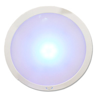 This stylish and slimline LED ceiling light features 2 different light settings a blue (mood) light or full brightness. It's slimline design is both aesthetically pleasing and functional. This light has its own on/off switch built in. One press for blue light then one press for white light and one to turn off. Continual push will activate dimmer push and hold to dim up/down on whit e light from 5% to 100% Specifications: - 216mm Diameter - light settings including the Blue night light as secondary colour - Dimmable white light - Low power consumption
