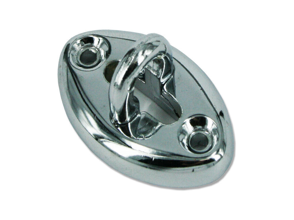 Cabin Hook Eye only. This will suit chrome metal cabin hooks of any size. These are sold separately as additional eyes may be required for one cabin hook. Hang the hook up when door is closed and to hold the door back when opened. The mounting holes are 29mm apart.