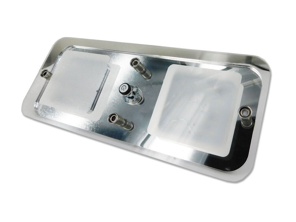 This stylish chrome and glass finished light compliments the interior of any modern RV and features a Blue night light function. Key features: - 3 different light intensity settings - Blue night light - 120 degrees flat angle light illumination - Centre frosted internally for glare reduction Specifications: Operating voltage: 12V DC Dimensions: 220mm x 90mm Setting 1 - 80 LUMENS Setting 2 -150 LUMENS Setting 3 -270 LUMENS