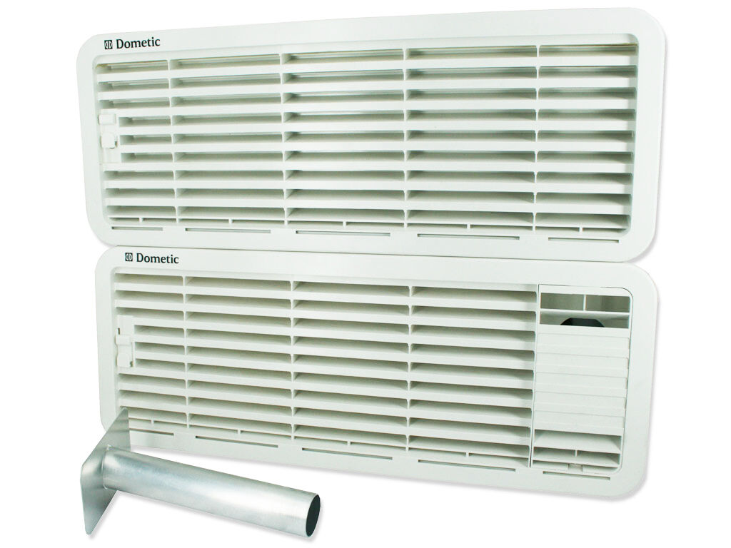 The Dometic Vent & Flue Kit has been designed especially to provide the very best in ventilation for your Dometic Absorption Refrigerator which significantly results in a better cooling performance. Featuring two mounting frames and aluminium pipe and plate. Dimensions:- Each Vent 48cm (L) x 18.5cm (W) x 4.5cm (H)