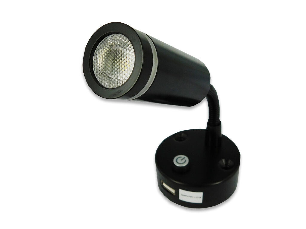 This clever LED light is equipped with a programmed switch that you can easily adjust from blue to cool white. The blue provides a lovely decorative or mood lighting effect while the cool white provides a spread of soft light to prevent eye strain. Manufactured with high quality LED chips as well as an innovation optic lens technology. Features:- - Swivel arm for adjustable lighting - USB Port with max charge 2.1Amps - Black Coated steel - Surface mount