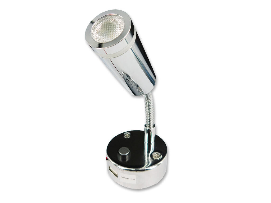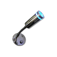 This clever LED light is equipped with a programmed switch that you can easily adjust from blue to cool white. The blue provides a lovely decorative or mood lighting effect while the cool white provides a spread of soft light to prevent eye strain. Manufactured with high quality LED chips as well as an innovation optic lens technology. Features:- - Swivel arm for adjustable lighting - USB Port with max charge 2.1Amps - Coated steel - Surface mount - Dimmable option
