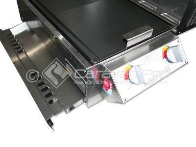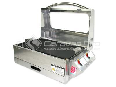 The Sizzler Deluxe with high lid is great for camping and caravanning. It comes standard with a solid hot plate and two burners.