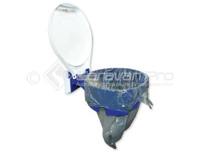 The Croc Bin is simple & stylish in its design. It can use standard recyclable grocery bags to store the rubbish in inside the mesh outer bag which is included also has a lid to keep the smells in and the flies out.