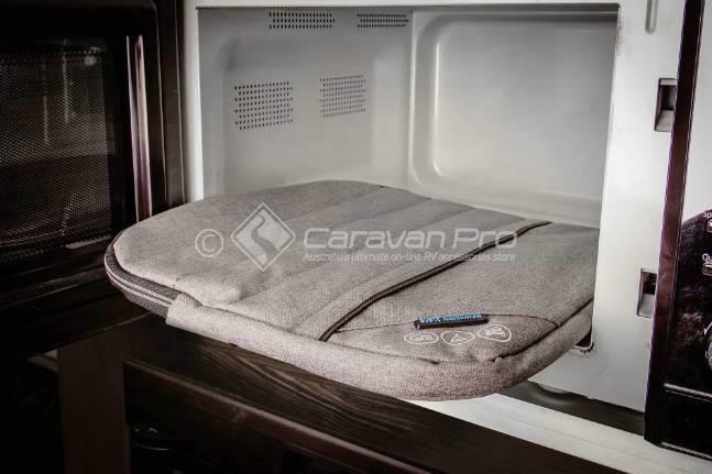 Clever and simple - slide the microwave dish into the Microwave Dish Buddy zip close place back into the microwave for protection through all your journeys both on and off road