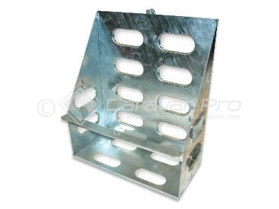 Stylish Galvanised steel Jerry can holder as fitted to Jayco products. Suitable to hold 20L jerry cans.