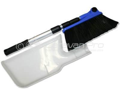 Compact and easy to store this dust pan clips onto the broom handle. This broom and dustpan are specially designed to be used on camping trips. It is a full-sized broom so it does not stress your back while cleaning.