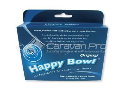 These biodegradable toilet liners will help keep your RV's toilet bowl sparkling clean and streak free. Use a Happy Bowl Liner once and you'll never use a brush to clean your toilet bowl again.