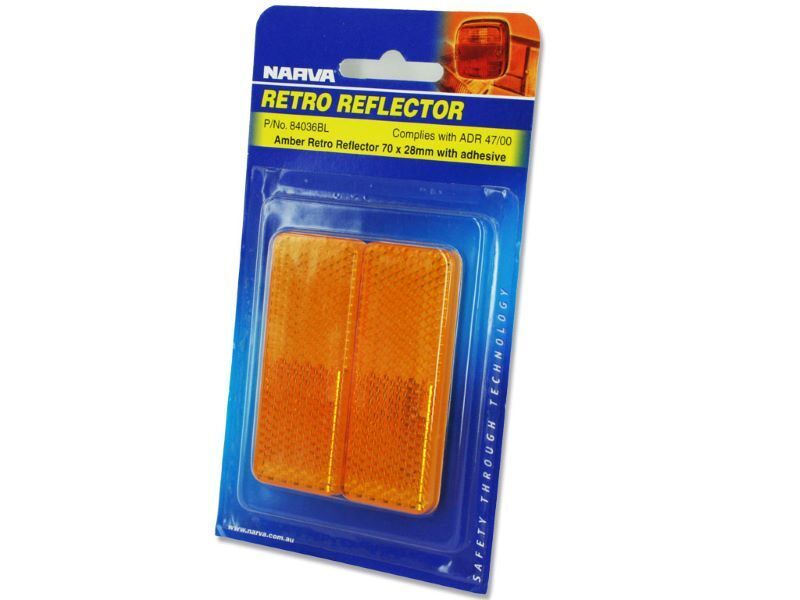 Narva Retro Reflector. Key Features: - Colour: Amber - Size: 70mm x 28mm - Adhesive backing