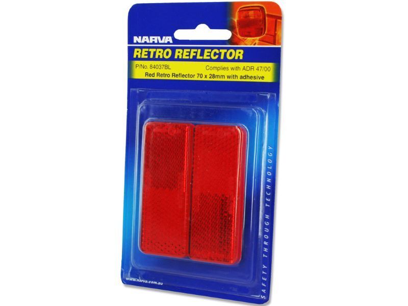 Narva Retro Reflector. Key Features: - Colour:Red - Size 70mm x 28mm - Adhesive backing