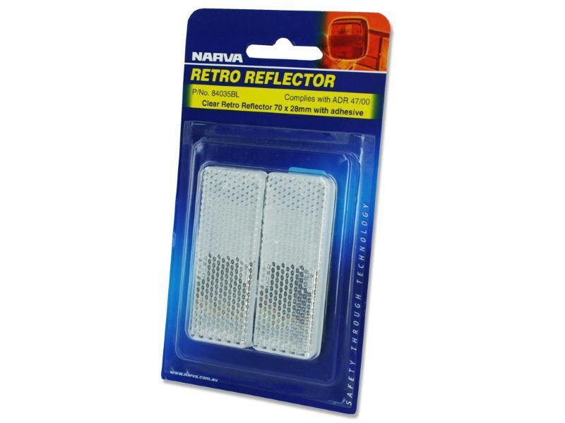 Narva Retro Reflector. Key Features: - Colour: Clear - Size: 70mm x 28mm - Adhesive backing