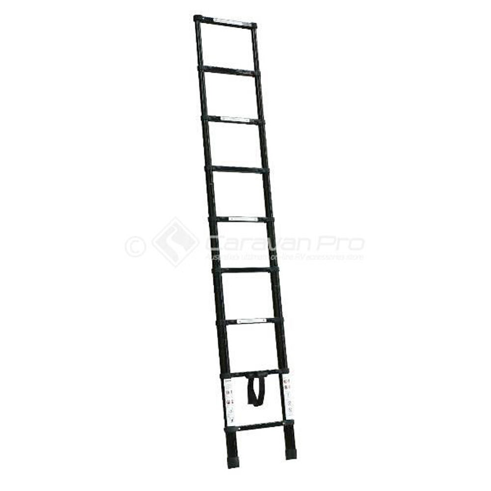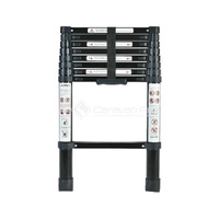 Sturdy and tough enough to withstand even the most demanding jobs TRA's Telescopic Ladder is constructed of durable aluminium alloy. Easily transported as it collapses down to just to just 89cm and weighs 12kg with all of the rungs 12 in total open and close individually in 30cm increments so it can be set at the desired height required for the job. Transports easily in a durable carry bag with handy strap. FEATURES - Lightweight aluminium design - Black Carry bag with shoulder strap - Compacts to 89cm - Extends to 260cm - Rubber-tipped feet - Velcro storage straps - Number of Ladder Step: 8 + Top Rung - Step Interval: 30cm - Net Weight: approx 11.5kg - Max. Load: 150kg - Approx. Size: 89cm x 48cm (Folded--L&W); 3.8m/12ft5 (Unfolded Height) - Package Size: 89cm x 50cm x 9cm